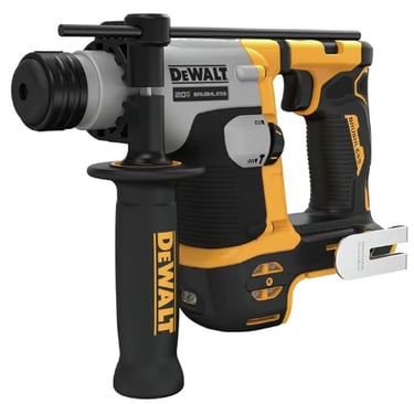 The DeWalt 20V Max SDS Plus Rotary Hammer Drill is engineered to combine robust functionality with an ergonomic design, making it suitable for both professional contractors and DIY enthusiasts. The drill features a lightweight yet durable construction, which is critical for handling prolonged use without excessive fatigue. The housing is made from high-quality plastics reinforced with metal components that enhance overall strength while minimizing the tool's weight, ensuring it can endure tough job site conditions.